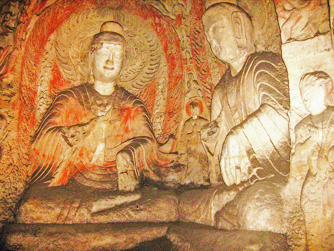 云冈的第七至第十窟是一组双窟,即第七和第八窟成一对,第九和第十窟则另成一对,此四窟并列而成一组,那是北魏朝同一个历史阶段的艺术遗珍了。就云冈艺术在历史时间留下的刻痕而言,这首创的双窟形制,还是稍后开凿之第五、六窟的先驱呢。然而,若按时间顺序而言,这双窟组合还应该是先有第十、九窟,接着再继续开凿第八和第七窟的。