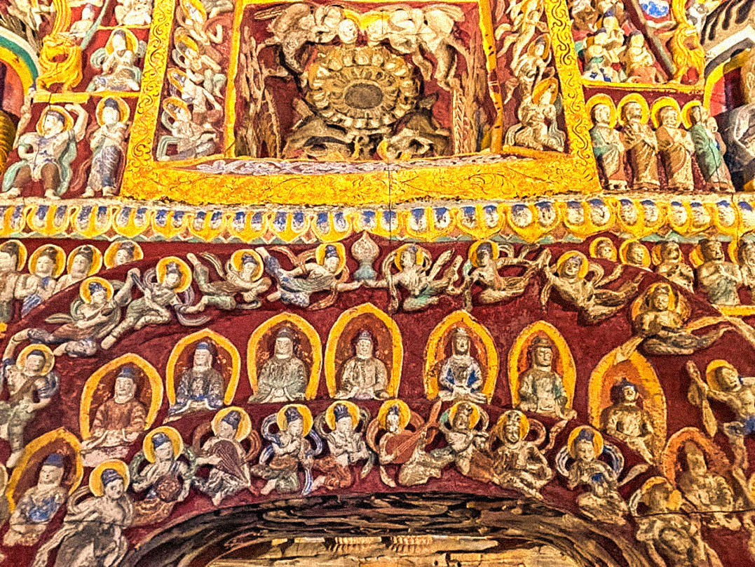驻步良久之后,你继续穿过藻井底下的门洞往后室探入,历久弥新的千古梵音,依然还穷追不舍的。无声胜似有声,那当儿你会觉得,洞窟里头的空间,甚至包括光线照射不到的小角落,似乎也被亮眼的音符给拨亮了!
