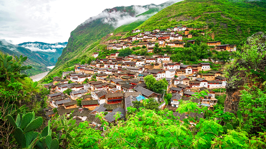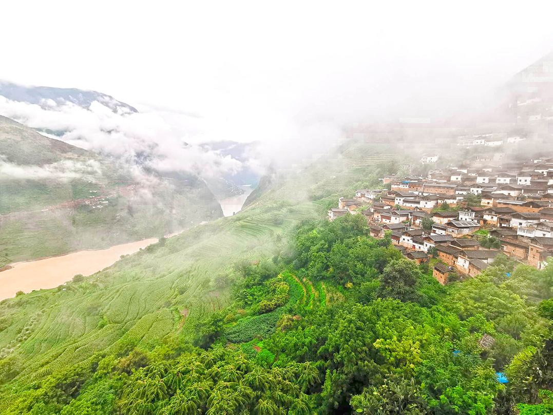 在冷峻的岩石上筑起温暖的家园,却是因为防御作用,宝山石头城东面是金沙江,西边是牦牛岭,北方是太子关,南面是岩可渡,四周有重叠连绵的梯田,形成“三山为屏,一面临江”的险要地势。