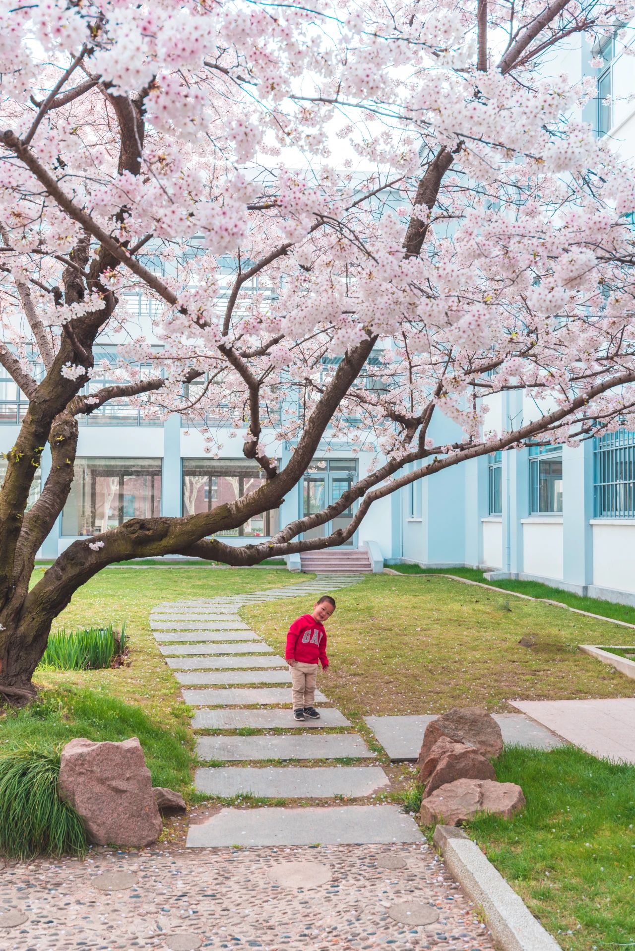 不过,最好看的樱花,还得在满眼青春韶华的校园。这里的樱花,正应了那句诗——