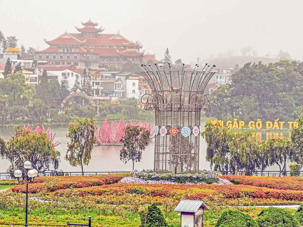 上番西邦的登山列车近年也成了许多人争相拍照的网红“景点”之一,因为这辆复古风格的红色小火车,重现了法属印度支那时代的优雅,很像电影哈利波特的梦幻场景;列车在雨雾中缓缓行驶,本来15分钟的车程,会穿越壮观的山谷,欣赏错落有致的梯田风光与花海美景,而这一切却因为雨雾过浓而被遮掩了。