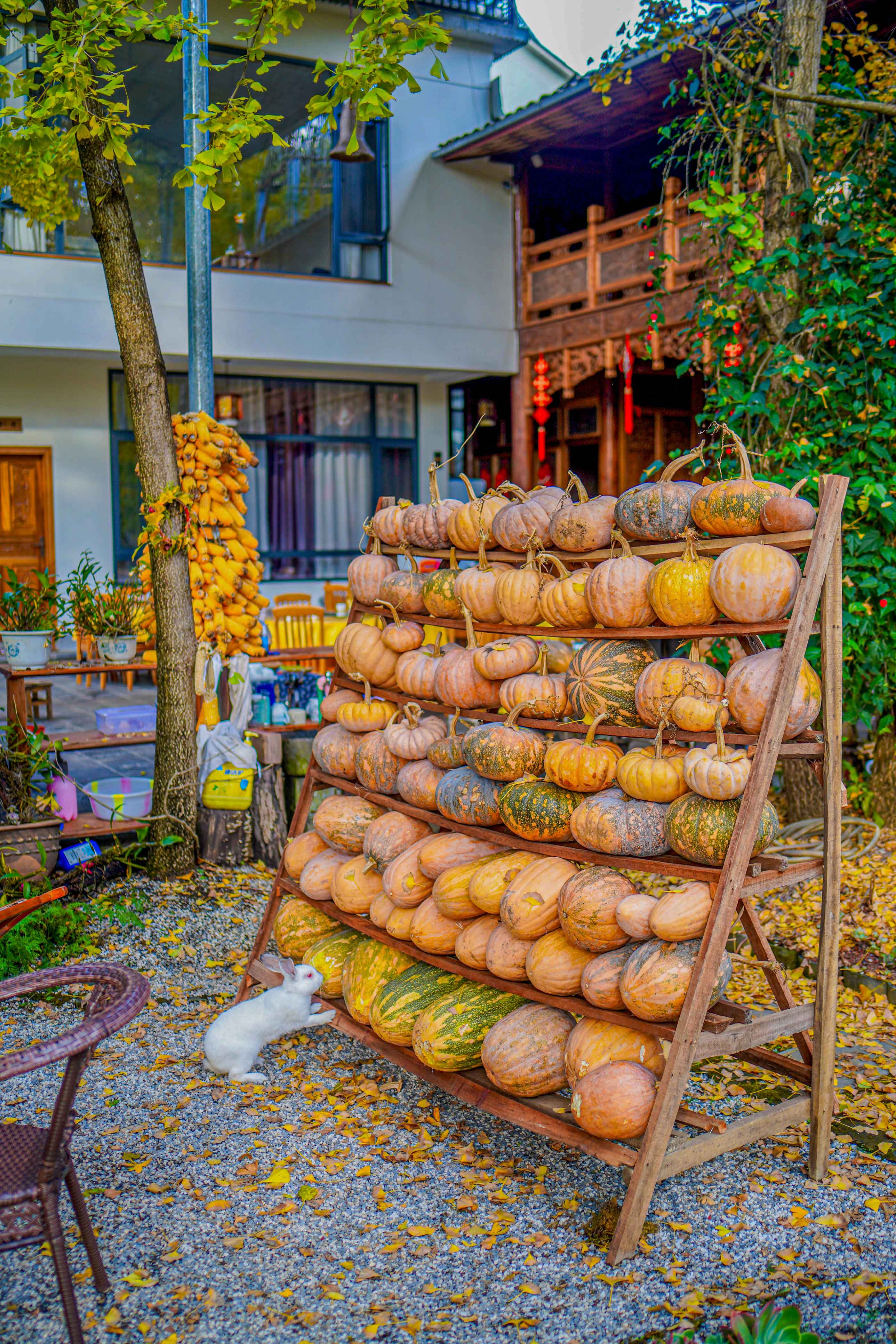 庭院里的小白兔可乐坏了——吃不完的金瓜!