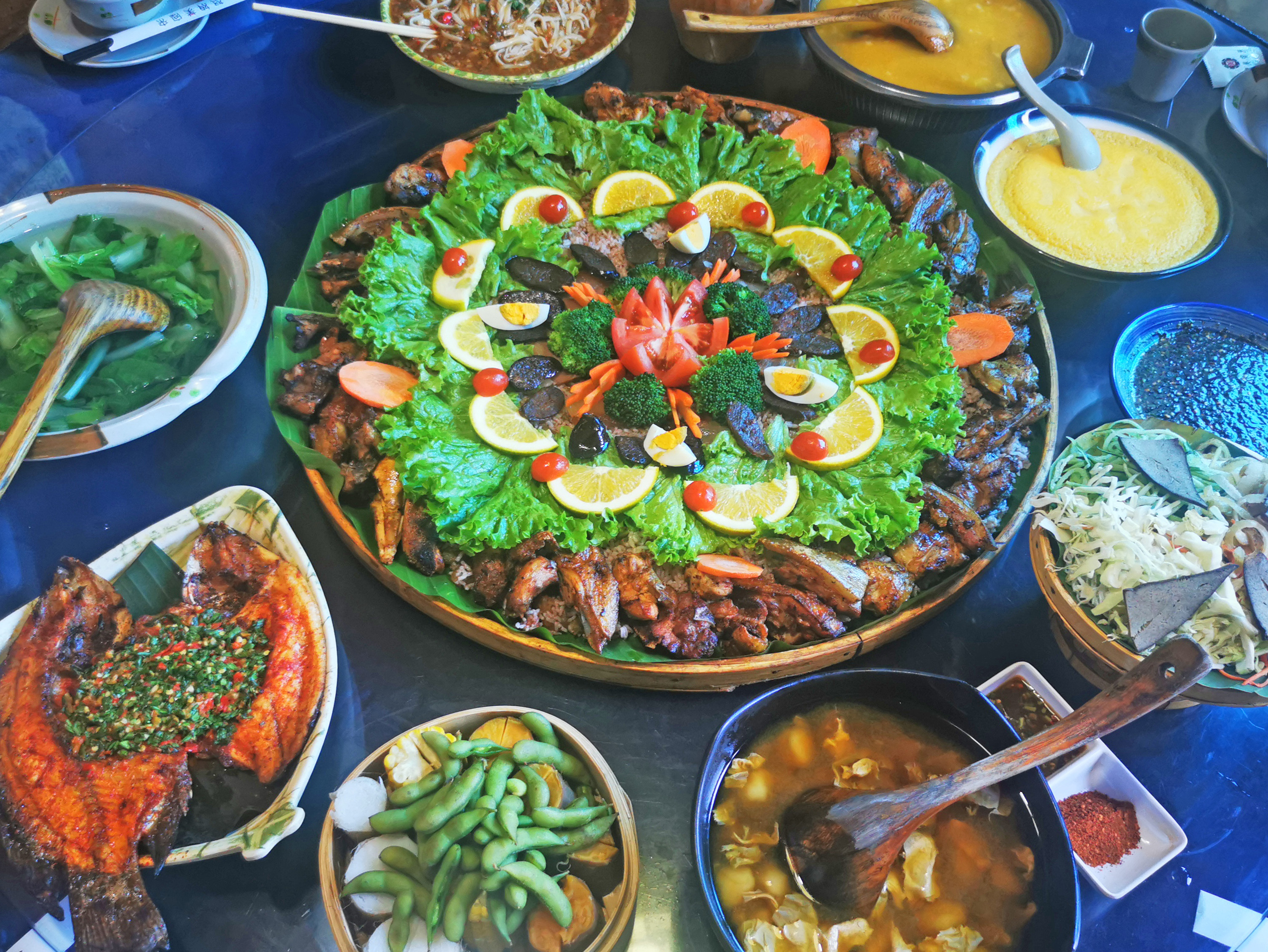 这里最著名的特色美食就是傈僳族手抓饭,用大米与碎包谷粒、或豆米、荞米混合在一起煮熟,伴之以洋芋、豌豆等许许多多佐料,盛在铺满绿叶的簸箕上,是怒江的饮食文化品牌。用手撮起一团送入口中,食物的本香与手掌的温度交织,瞬间理解了这片土地质朴而旺盛的生命力。