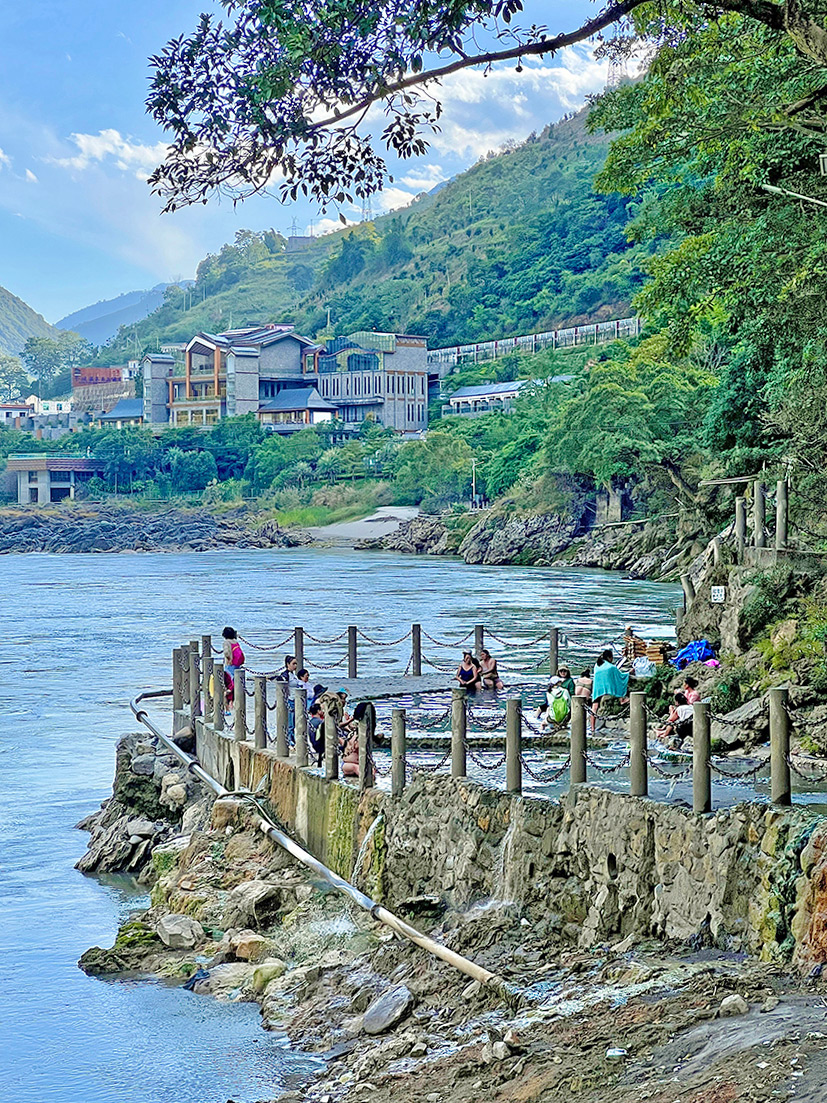 落地后,沿小径下行至江畔,便是登埂“澡塘会”。大小十八处泉眼自岩隙涌出,水温宜人,白雾袅袅。数百年来,傈僳族人每逢春节便汇聚于此,沐浴、对歌、举行“上刀山”的仪式,相信这天地馈赠的温泉能涤荡疾病,迎来安康。最大的池中,几位当地妇女正坦然沐浴,欢声笑语与水汽一同蒸腾。那份与自然全然相融的豁达与惬意,深深触动了旁观的我。这不仅是身体的洗涤,更是一场与传统文化和自然哲学的精神对话。
