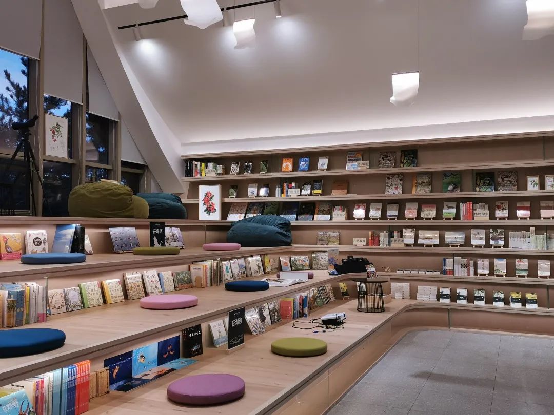 清华建筑师设计,泰斗级博物学家开课,100多位插画师集结,相比前面的网红书店,朗昆自在书屋听起来更像是一个学术空间,他们做的许多事都走在学术行业的前端。但当你第一次踏入这个空间,你不会有任何距离感。书屋位于北京温榆河公园内,外观像一个木质帐篷,也像一本打开的书,远离尘世,在自然间为你遮风挡雨。室内原木色的台阶,色彩绚丽的儿童绘本,典雅清新的植物插画,又悄然进入了一个自然博物馆。