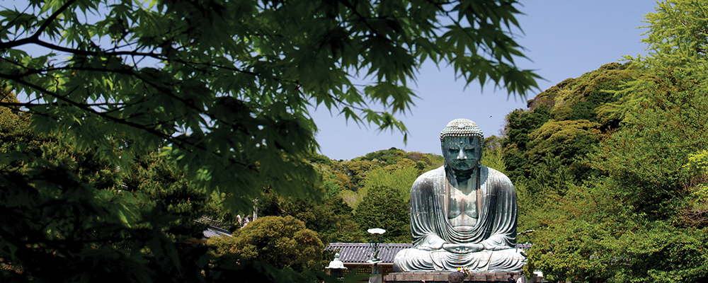 "日本因为在禅宗思想的薰陶下,在寺庙的建筑上展现了简约、质朴的特色。"日本寺庙往往给人ㄧ种空灵,寂静和安定的美感,让人很轻易的就能进入禅定的状态。
