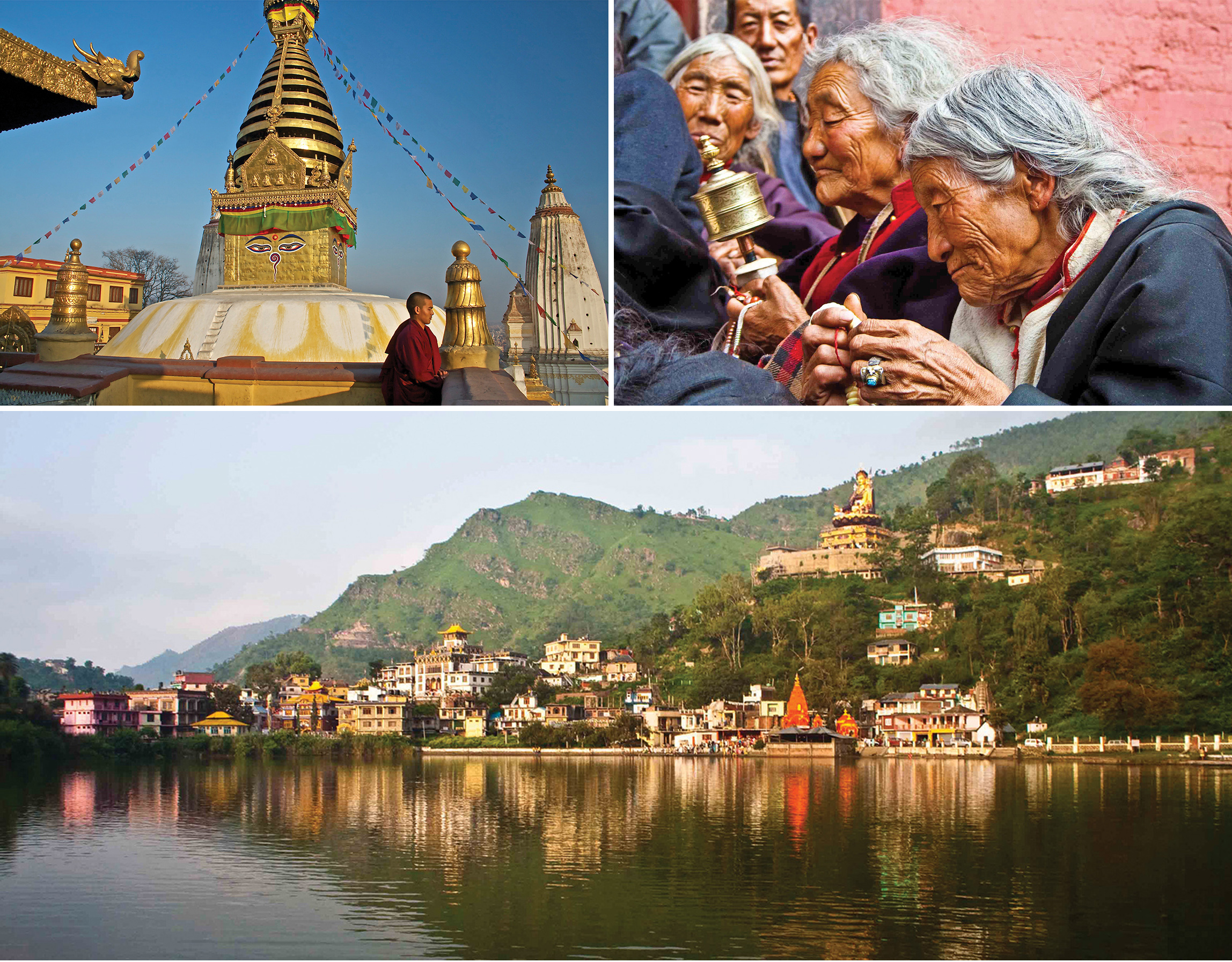 藏传佛教的建筑展示的是五大元素 - 地、水、火、风、空所代表的色彩。