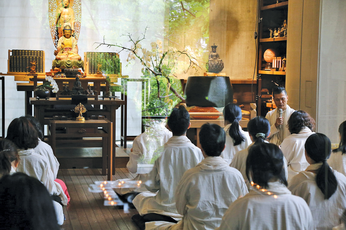 广纳众生的普光明殿。除了说法经唱,打坐修课,也是人文艺术的殿堂。