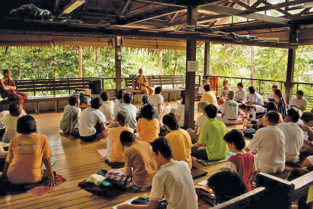 古:我以前也是有教过,但现在认为很浪费时间。修禅一天或几个小时,虽然是有学习到一点东西,但是我个人认为它的效果不好,你学了学过後就忘记了。所以我现在教至少要有一个周末的课,或八、九天这样的时间。我觉得愿意花这样时间来参加的多数是比较有心学学习的。