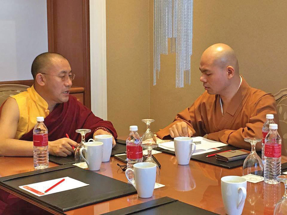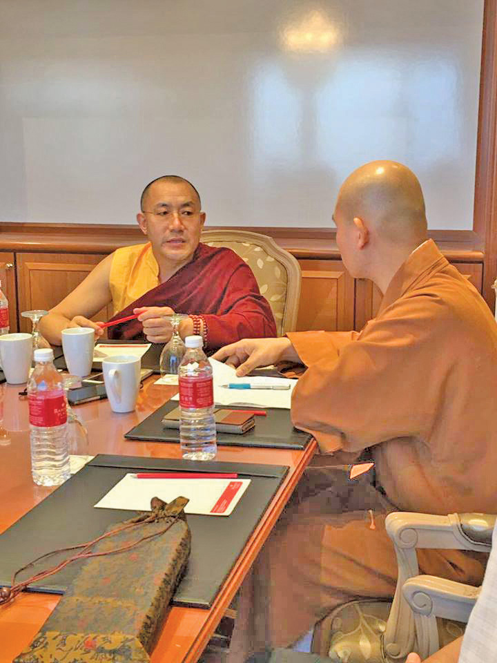慈:《时轮金刚》里面有明显的规定和要求,比如说同个地方有出家人和在家人,两人的修证是一样的话,在同等条件下,灌顶等密宗仪式都由出家人去做。但是有一个特殊情况,要是在家人的内在修行境界和戒律的层次超过出家人,就由在家人去做。1300年前,佛教传到西藏,一开始有两种人:在家人和出家人。几百年以后,藏地出现一个灭佛时期,持续了五六十年,那时候对佛教贡献最大的就是这些在家人,因为出家人都被迫还俗了。所以今天藏传佛教绝大多数的传承灌顶,都是在家人保留下来的。虽然从外表看不出来是什么身份,但是他们的内在修行是很高的。当时就有个非常了不起的在家人,通过修行的力量与神通让国王承诺不再伤害在家的瑜伽士,所以在家修道受到的伤害比较小。后来才有几个出家人带着一些戒律的书本逃到青海去,灭佛过后出来恢复传戒。