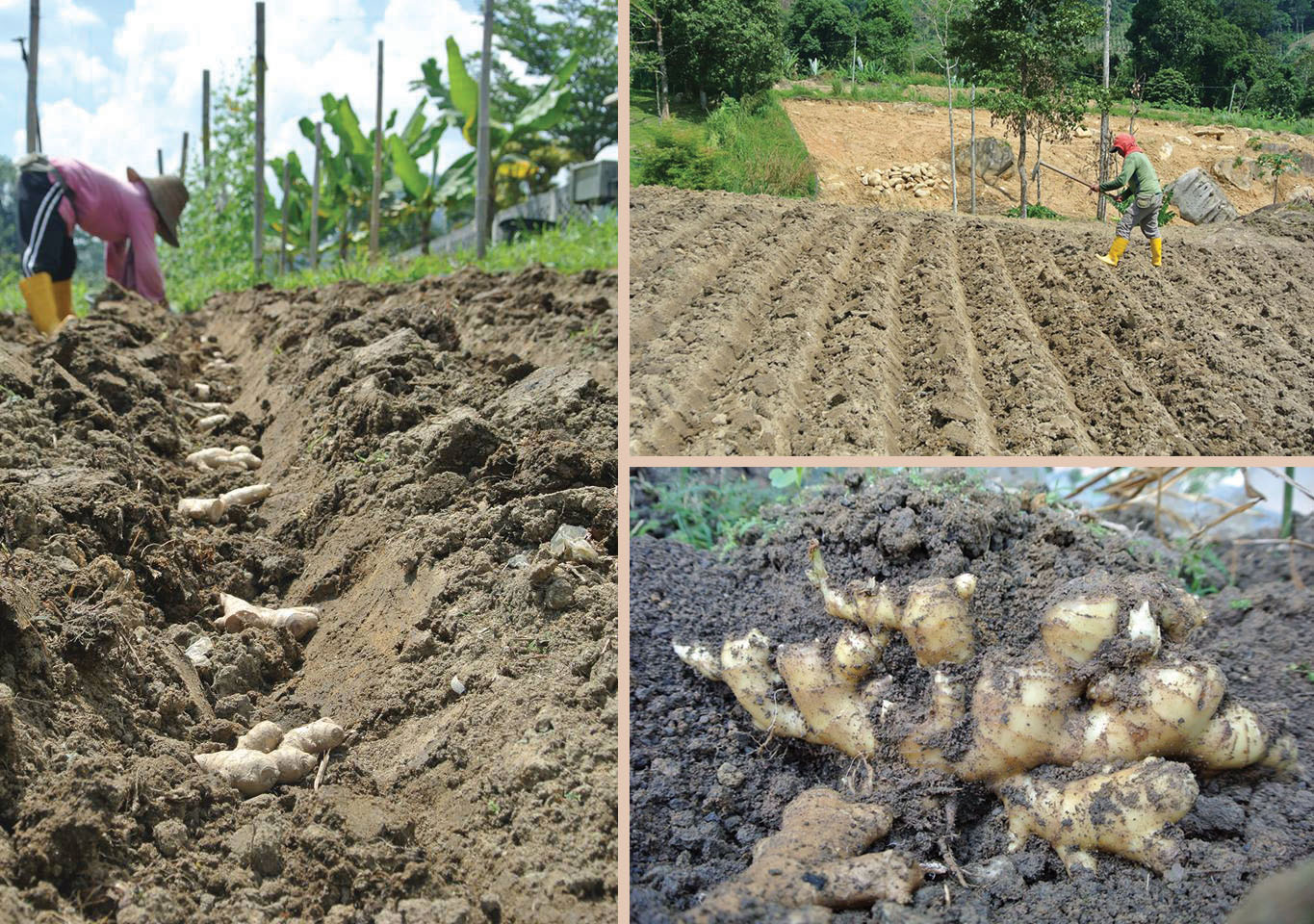 她带我们去看一亩专门种植姜的园地,武吉丁宜最著名的就是文冬姜:“松岩姜结合有机与生态平衡的种植法,遵循姜十个月的收成生长期,不仅培植出品质优美的姜,也同时维护了土壤应用的平衡。松岩姜蕴含着的不只是姜的温暖,更包含着对大自然的抚爱。”