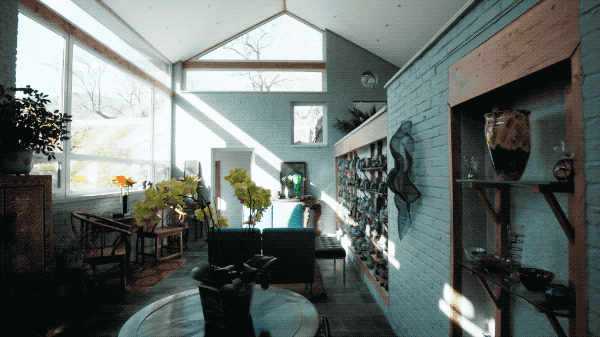 他拆掉了室内吊顶,将木梁和坨完全裸露出来,非常敞亮,他还将室内的屋顶粉刷成了黑色。正式搬到这里之后,随着夫妻俩居住习惯的变化,房子也在不停地更新。至今,已经进行过五次大规模的改造。
