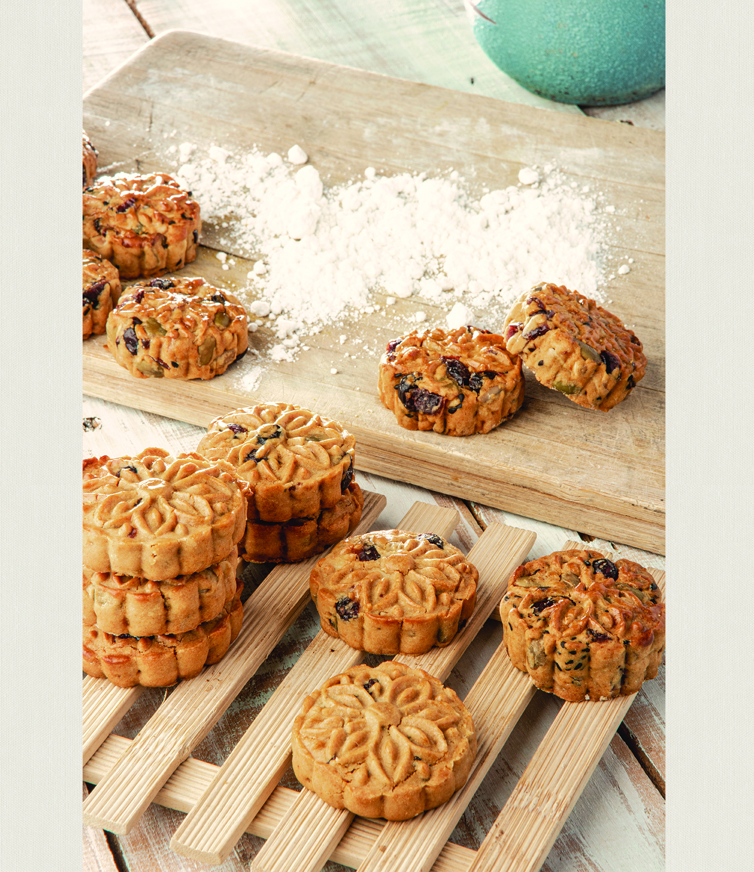 6. 预热烘炉190◦C烘月饼10分钟,取出涂上(C)淡奶液,再回炉烘10分钟即成。