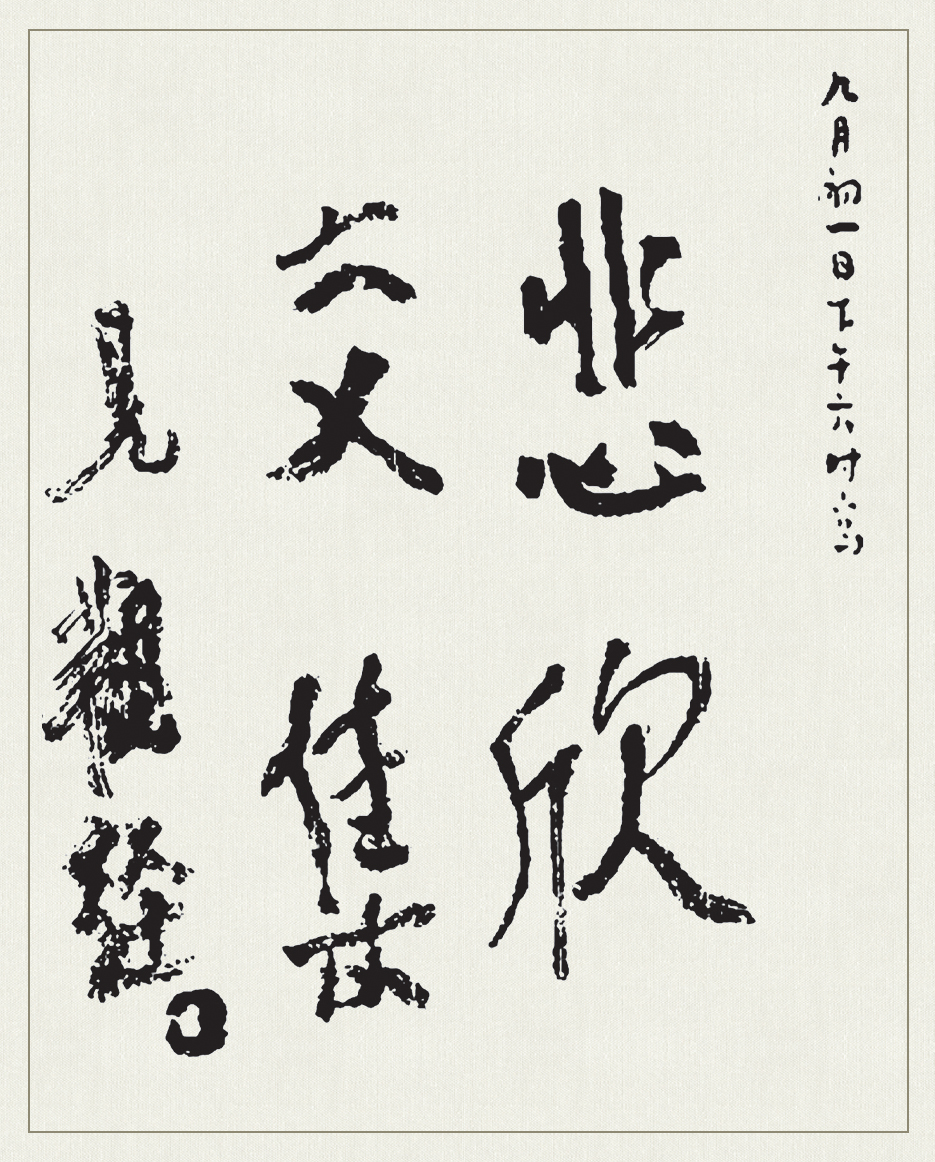 在中国清源山有座弘一大师的舍利塔,对面石壁上刻着大师的绝笔:“悲欣交集见观经”,笔者认为这七个字对修持净土法门有着重要的指南。由其,近期家师预知时至的舍报更是感同身受,此弘一大师的墨宝作品有着一个特点“悲欣交集”是大字,而“见观经”相对下字体比较小,因此一般上很多人都把重心关注在“悲欣交集”这四个字,却忽略了“见观经”的最关键,或许正是此处最绝妙。