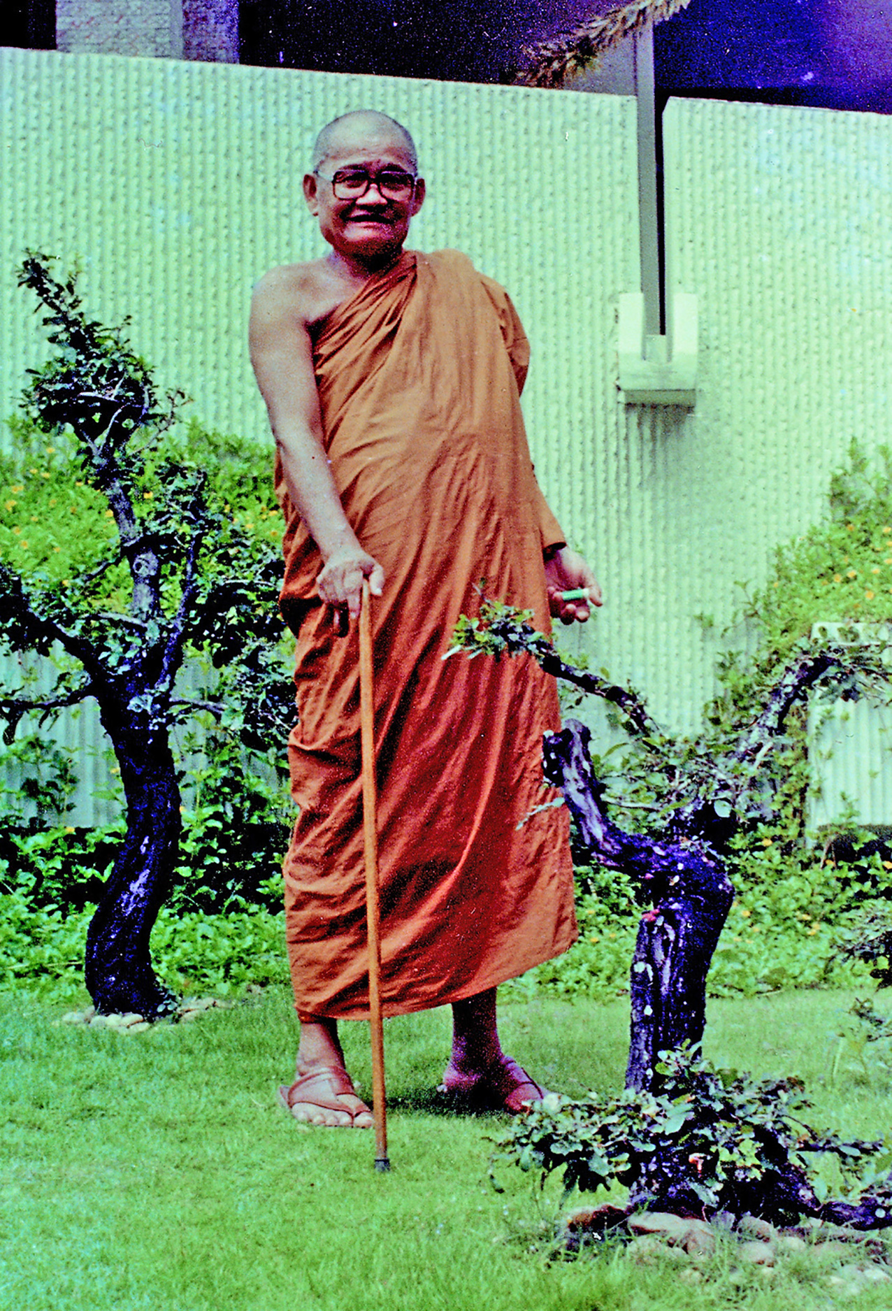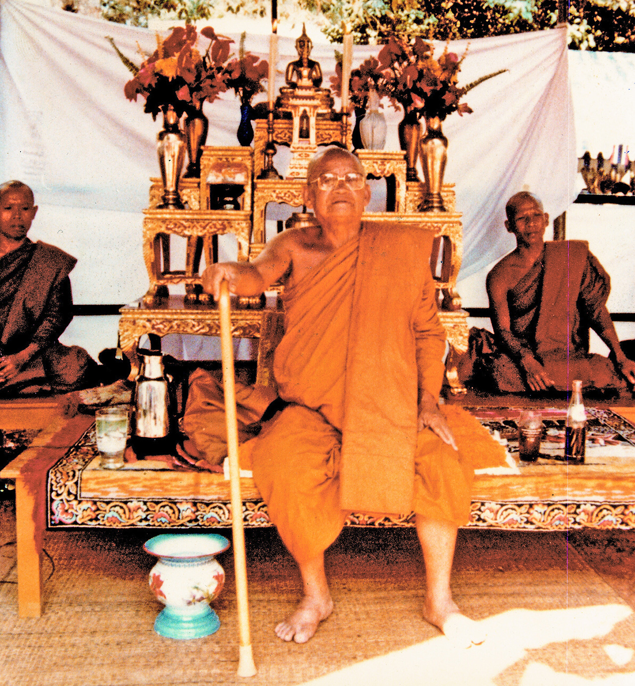 关于这位柬埔寨比丘,有一件事使得隆波对他生起极大的恭敬心。事缘有一天,跟随这位比丘学习戒律之后,隆波像往常一样去山坡后面坐禅和经行。晚上十点钟左右,他正在行禅,听到踏着地上树枝的脚步声向他走来。起初他以为是蛇或出来觅食的动物,可是当声音靠近时,他看到来的是那位柬埔寨比丘。