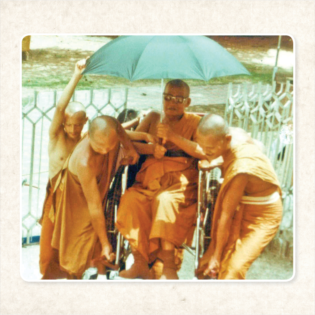 无论如何,僧团——隆波的出家弟子——对于应该给以隆波怎么样的医治及治疗时间,并没有任何事前预定的计划或协议。事实上,每个人都希望遵照隆波的意愿行事。可是,隆波的病情总是突发性,而且事先没有预兆。因此治疗方式都是根据当下的状况进行。比如,当隆波受到痰阻塞而窒息时,弟子们总不能坐视不救,让隆波受苦。于是,在医生保证只需一阵子就会平安之下,让他们替他装上呼吸辅助器。通常什么事都可能发生,弟子们只好接受事情的到来,继续服侍他,以感恩心看顾他。