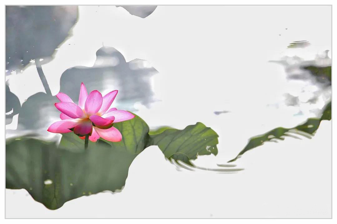 水墨画是中国画的一种表现形式,如果要将水中的荷花拍成水墨效果,那么构图就非常重要。要仔细观察荷花及周边景物,在尽可能删繁就简的前提下进行构图,让画面有更多的中国画意境。我一直都在强调摄影是在用相机说话,用镜头抒情。所以我的片子都是拍出来!