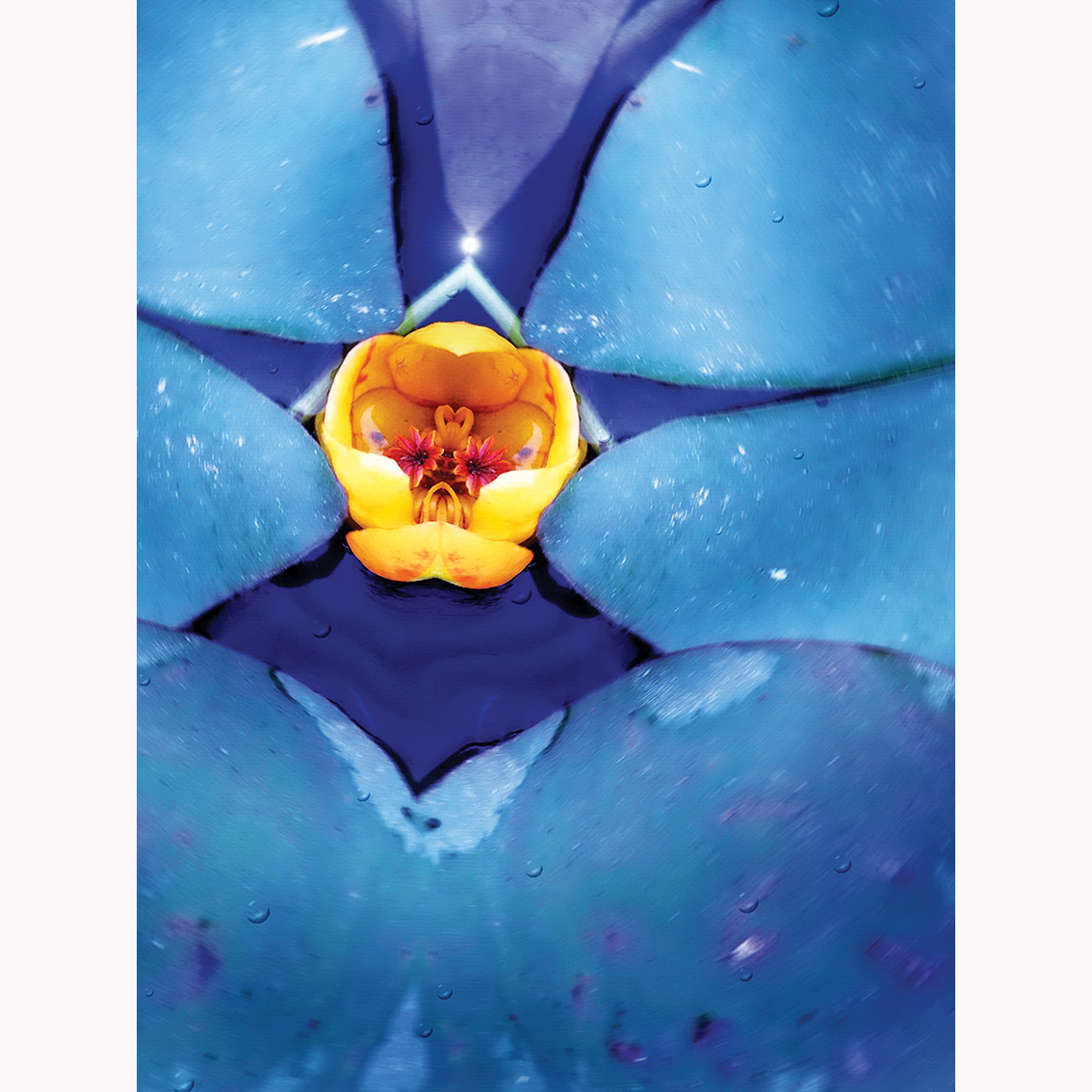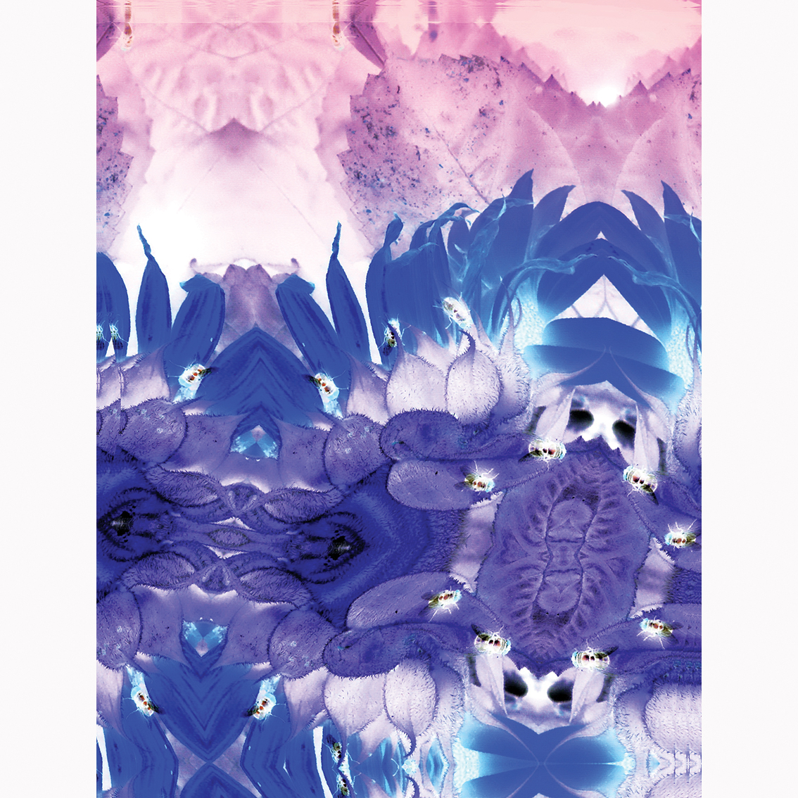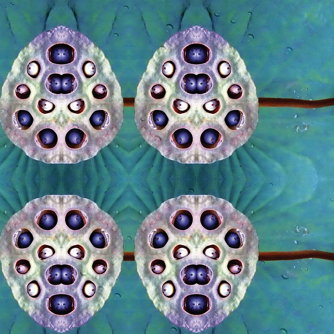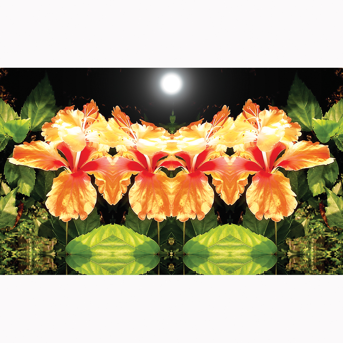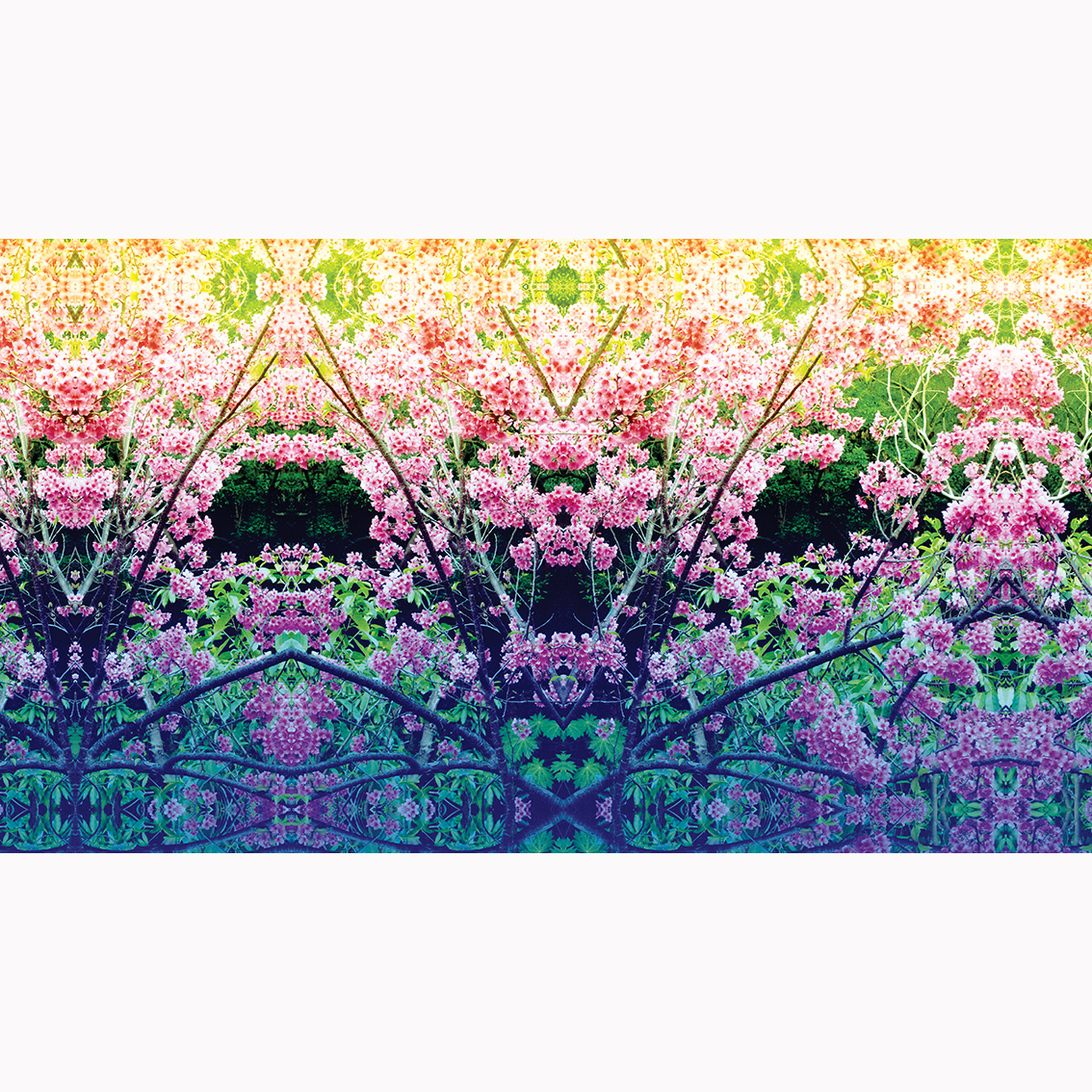 而我个人画蔓陀萝也有一段时间了,也喜欢拍花,最近才发现,用影像软体竟然也可以将花的影像转化为一朵一朵的蔓陀萝。这过程颇类似道德经第四十二章所说的:“道生一,一生二,二生三,三生万物。”镜像的处理看似只是对称,画面元素在减少的过程中又生出新的元素,可谓“不生不灭, 不增不减。”