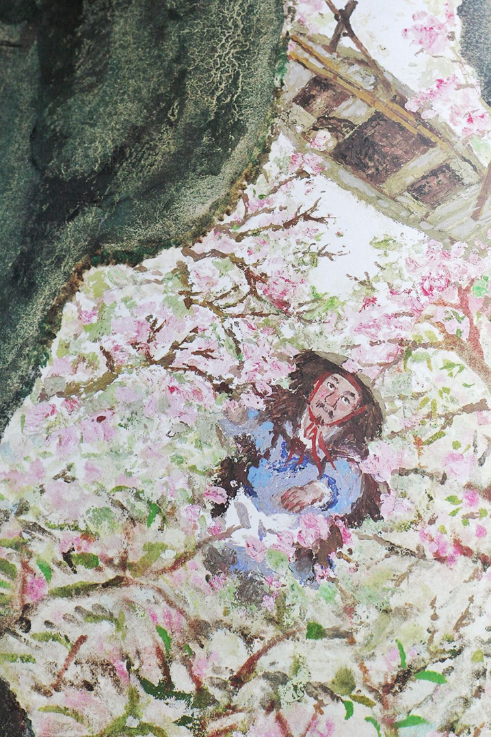蔡皋:我的艺术审美总体是素朴,跟自然贴合。但青春本身又可以是奢华的,雨水充沛的。就像春天的奢华,大红大紫。非常自然,不做作的无尽美感。艺术,对我来说,就是追问,就是求证。用自己的生命体验去与我们阅读过的那些伟大的作家印证。与安徒生印证, 与屠格涅夫印证,与契诃夫印证。读书的过程就是印证的过程,照镜子的过程。照出我自己是多么微小,照出自己的幽暗。画桃花源的故事,我借着明媚的桃花之恋光,来照亮我自己。