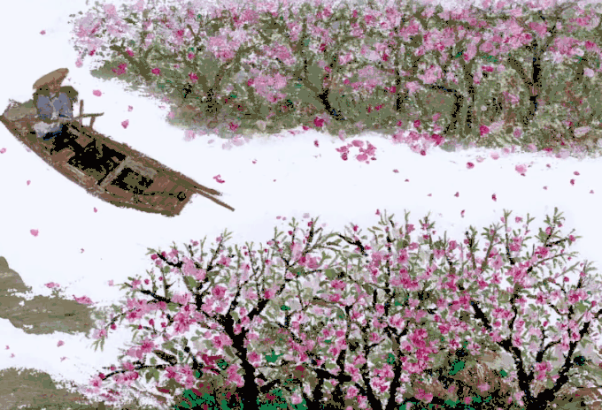 Q:您画的《桃花源的故事》在艺术上很成功。你是怎么理解桃花源的故事?