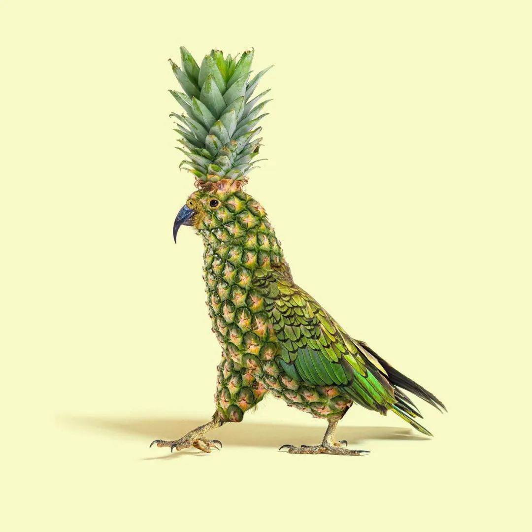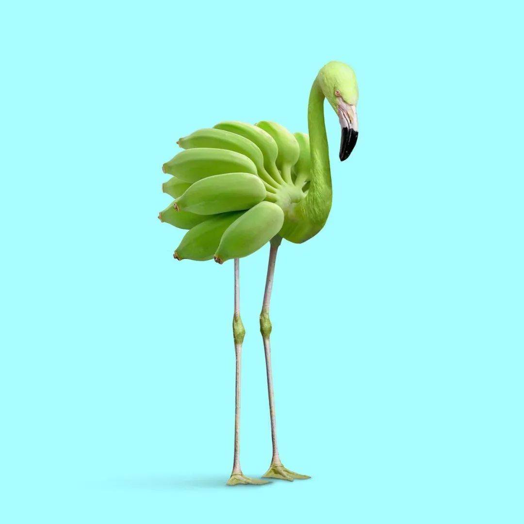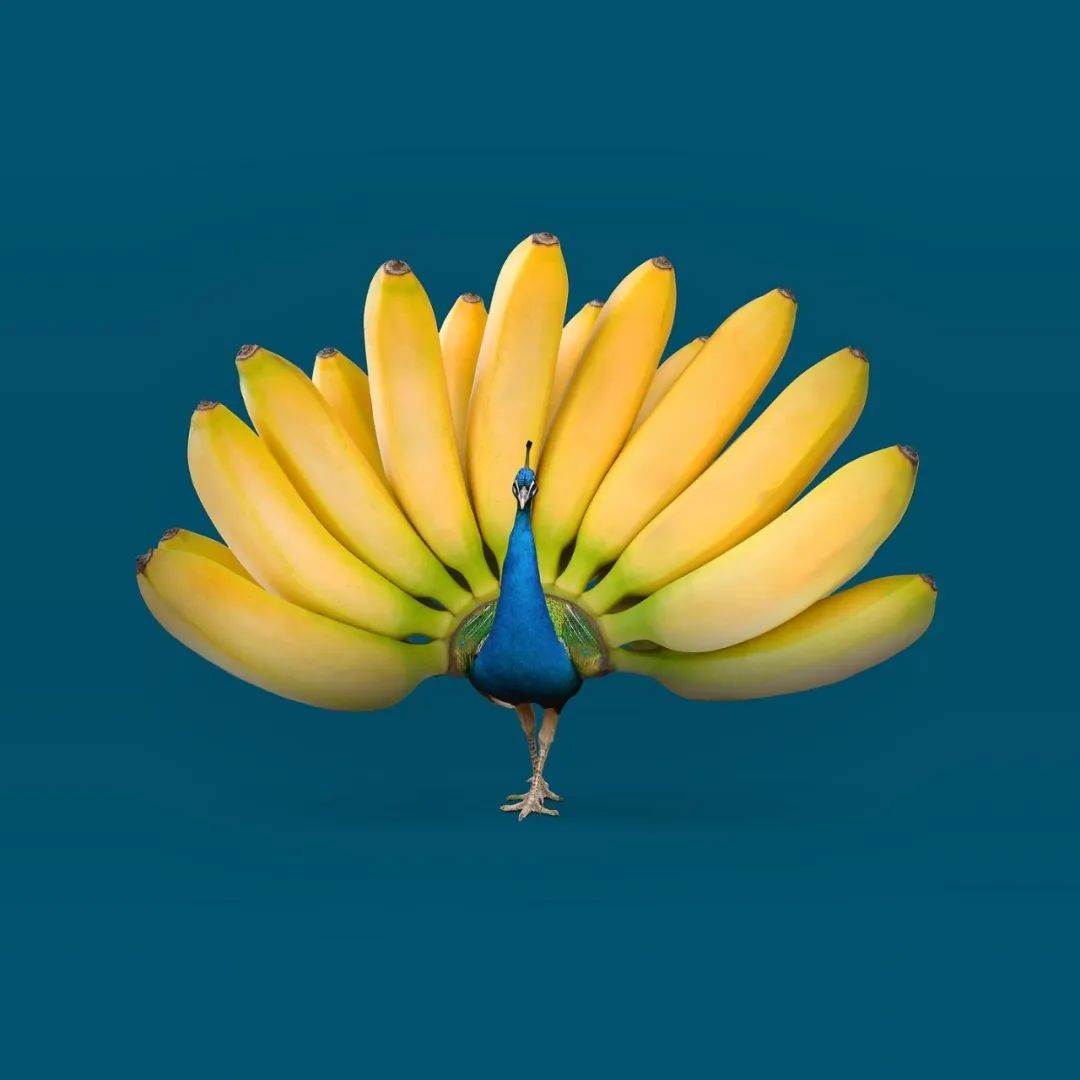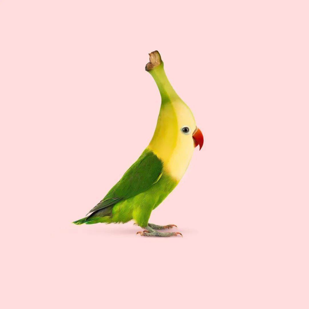 香蕉成为小鸟的身体并拥有了五彩的颜色