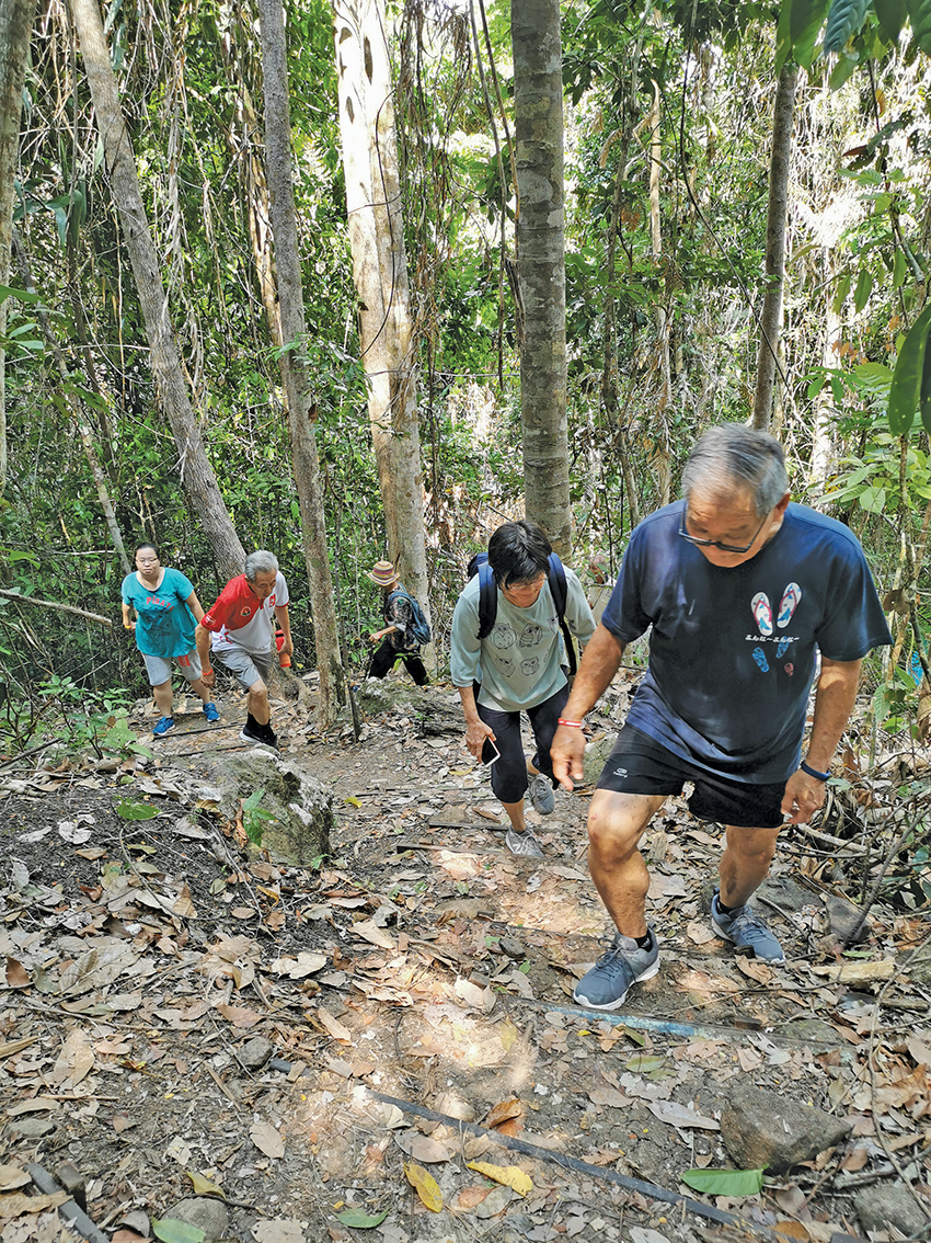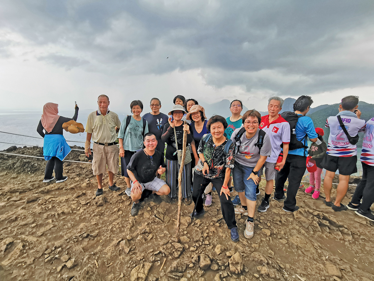 成功“攻顶”时(对,不要怀疑,这高度于我们而言,攻顶一词绝对是正确的),突然乌云密布,豆大雨点毫不留情陆续落下。念及雨时路滑,我们根本来不及品尝景色,匆匆拍张合照就下山了。匆忙下山,雨却不下了。可我们并未太在意这结果,珍珠岛之旅,是一段走进丛林、走近自然的历程。过程,其实才是重点。