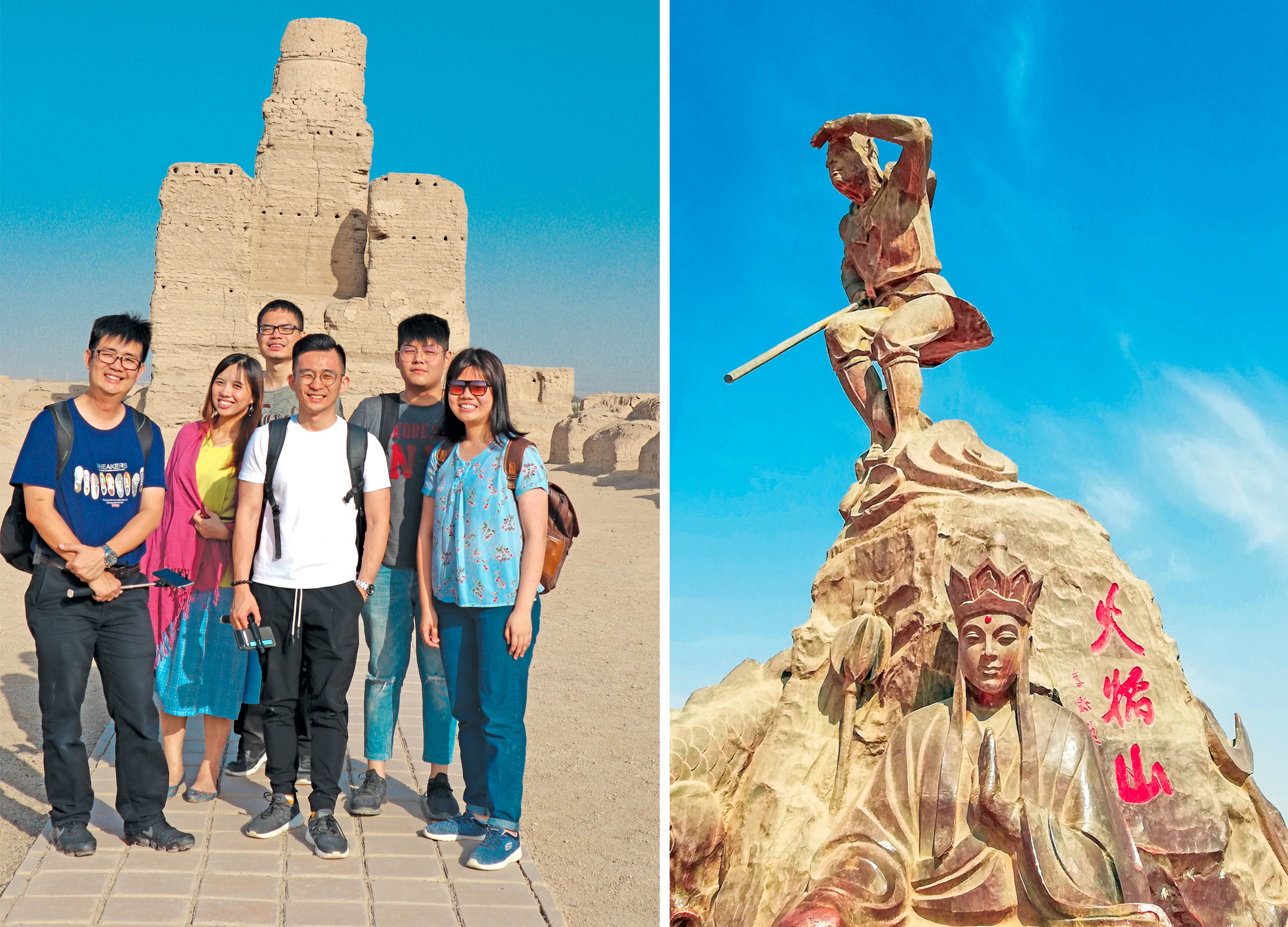 吐鲁番火焰山唐僧与徒弟悟空。