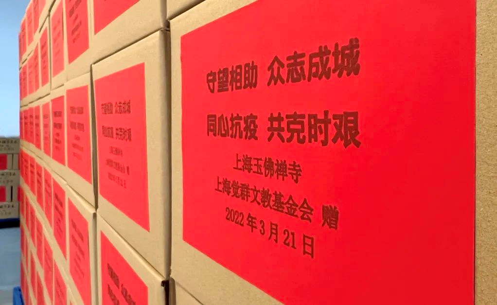 同时,玉佛禅寺与上海觉群文教基金会积极与玉佛素食品工厂沟通,积极筹措物资,向普陀区各街道捐赠了玉佛素面、素食点心等食品。