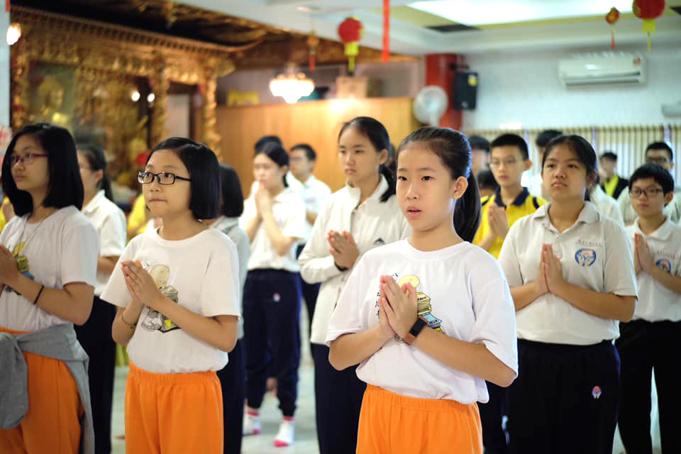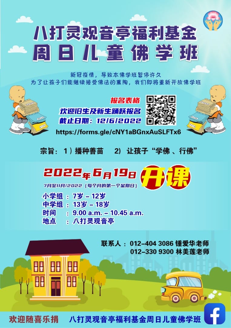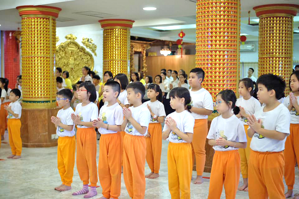 大部分的星期日,不论是碧空如洗,旭日冉冉从东方升起,抑或是晨雨霏霏,晨寒料峭的早晨,从八时开始,身穿白色圆领衬衫、橙色运动长裤的小学生,和身穿白色领衬衫、蓝色运动长裤的中学生,三五成群,开开心心,充满正能量地鱼贯迈入八打灵观音亭。