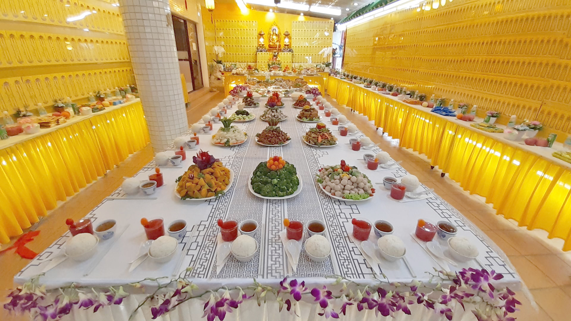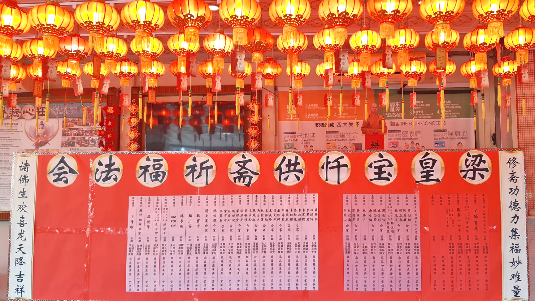法会设有祈福【延生坛】和超度先人亡者【净土坛】及供斋供花果功德项目。