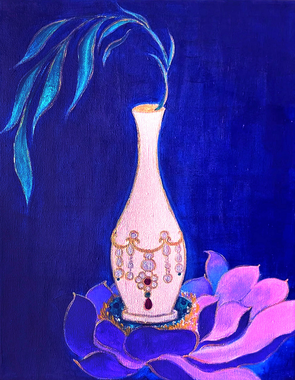 观世音菩萨手中的净瓶与杨枝,表示菩萨救苦救难的广大悲行。《法华经·譬喻品》有言:“三界无安,犹如火宅,众苦充满,甚可怖畏,常有生老病死忧患,如是等火,炽然不息。”三界众生,心中充满热恼,观音菩萨能体察众生苦痛,用净瓶中的甘露水遍洒世间,使身处热恼中的众生获得清凉。