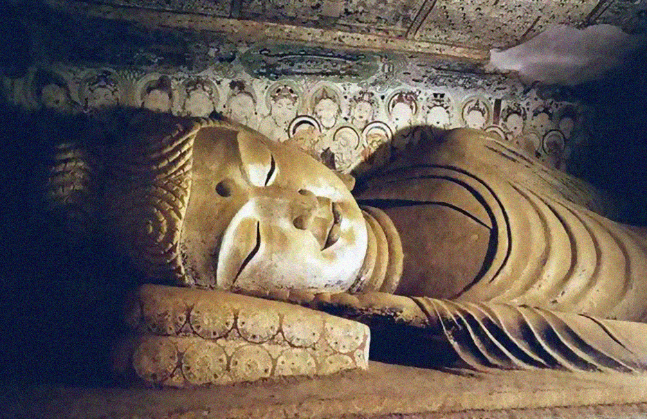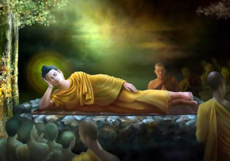 那时,据释迦牟尼佛在菩提树下悟道已有四十多年。这期间,许多值遇佛法的众生,都寻求到了切实可行的解脱之道。他们有的获得了现世安乐,有的证得出世果位,当佛陀80高龄的时候,他与弟子们来到拘尸那国,在阿利罗跋提河边,娑罗双树之间,与弟子们做最后的嘱咐。然后,他右手支头,左手放在身,双足并拢,在农历二月十五,进入“涅槃”,从此在人世示现灭度。