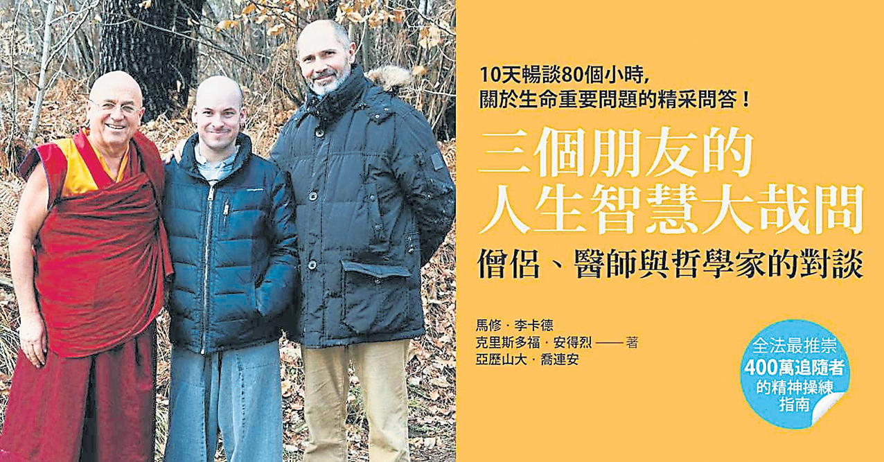 三个人都大有来头与背景:僧人马修李卡德是出家逾四十年的藏传佛教僧侣,跟随著名顶果钦哲仁波切修学,著有多本畅销名著《僧侣与科学家》,《僧侣与哲学家》;克里斯多福安得烈是精神科医生,情绪心理学权威,实践静心灵修冥想多年,将东方禅观正念带入医院,引导病患远离尽量精神苦痛;而亚历山大乔连安则是哲学家与作家,由于本身患有殊疾,曾在残疾特养中心寄宿17年,著有多本著作,以哲学家身分探讨人格成长建立与哲学的关系。