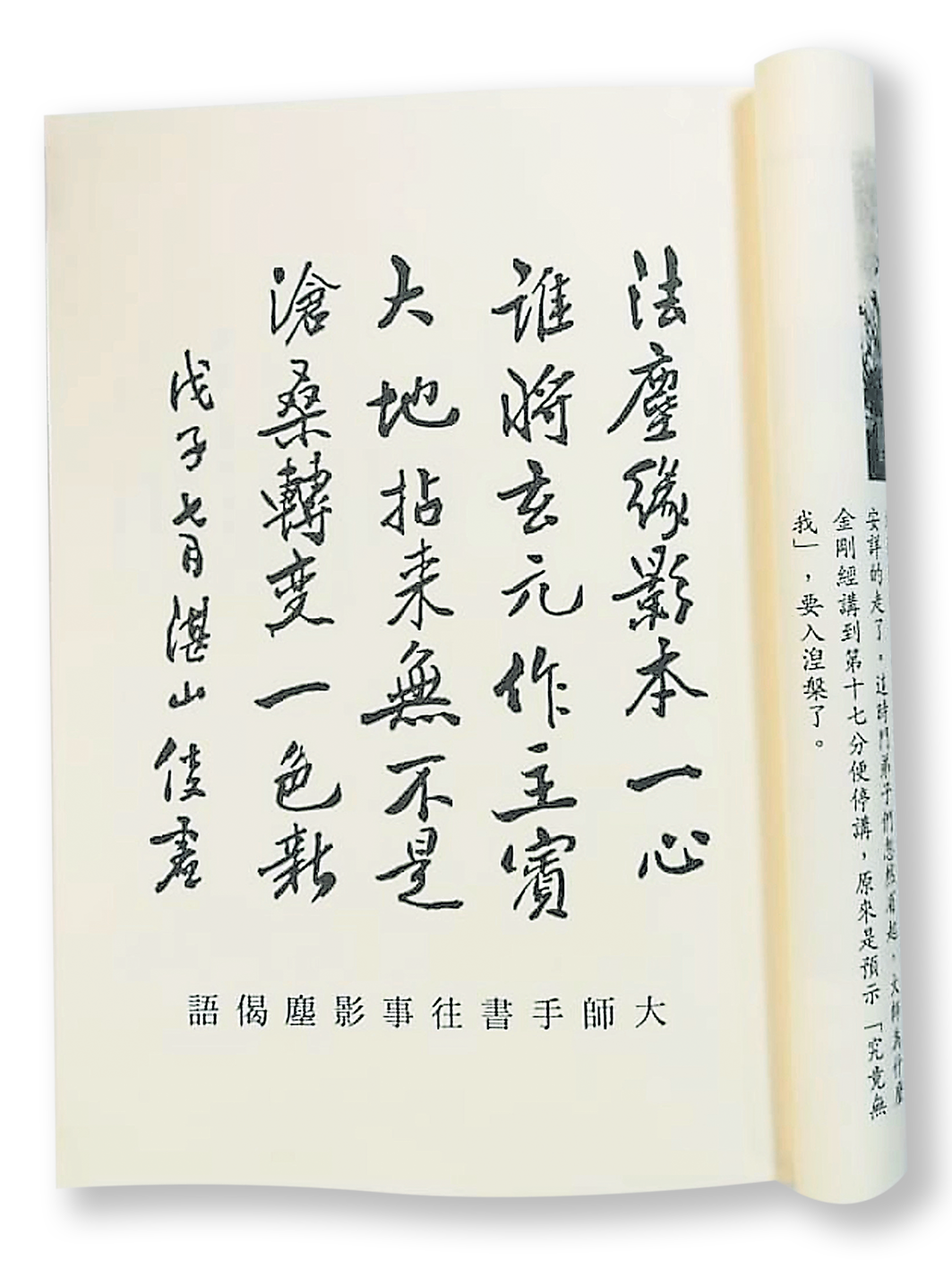 第廿一至廿二章,倓虚大师回忆在他在湛山的10年回忆,当中包括邀慈舟法师与弘一法师。其中描绘弘一法师在湛山教学极其平实动人,彰显弘一持律严己的修行风范。