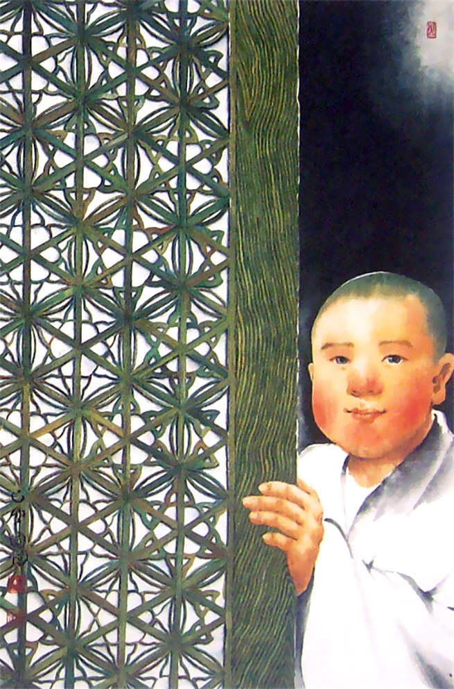 《镜子》是他继《风》后的第二本绘画作品,同样以童僧为主题。