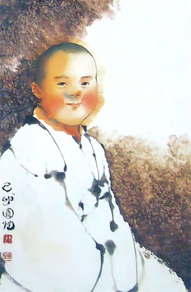 或许基于此,圆性法师选择了以天真可爱的“小沙弥”为他画中的主角,通过这些单纯的小孩,来突显禅原具的那份自在与天真。