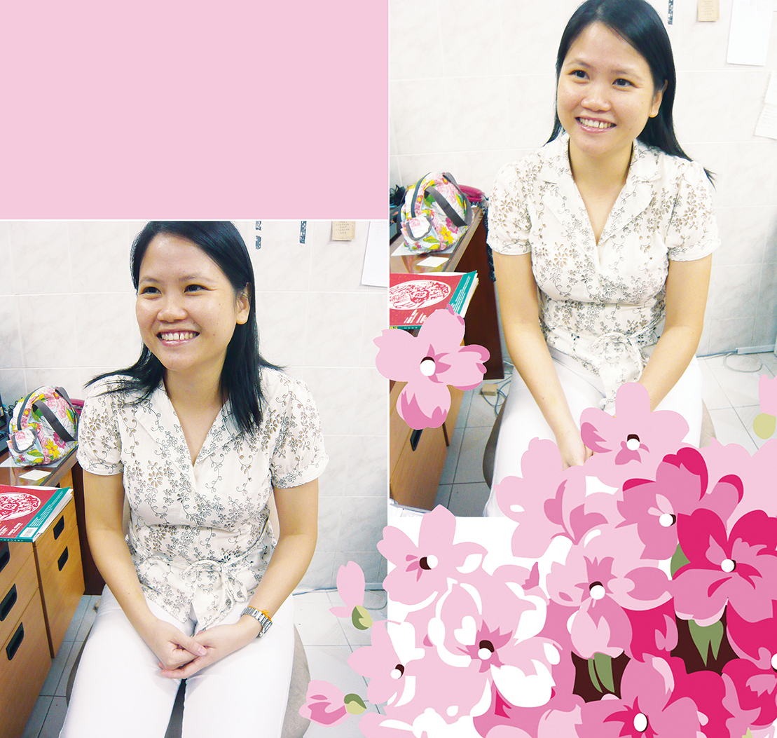 她个性好强,在投入职场之后深受老板的器重,不时委以重任,因此她在公司里有机会担任多种不同的岗位,发挥她的才能。她担任过市场调查,她是合格的品质管理(ISO)稽查师,她还在公司担任培训导师,也担任稽查考试考卷的评审官。