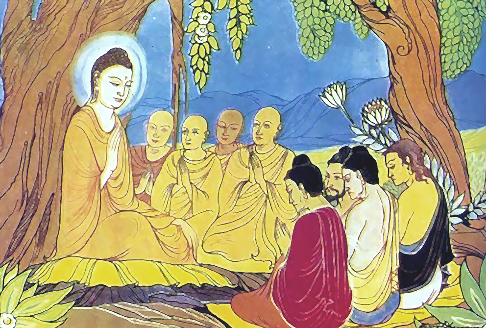 ……梵天沙巷婆提心想:“薄伽梵已允传法。”于是对薄伽梵顶礼、右绕后,就地消失。