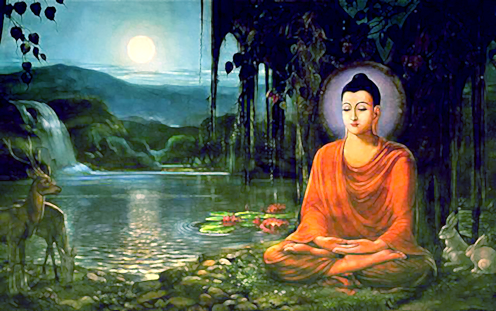 ……理解了梵天的恳请,出于对有情的慈悲,薄伽梵于是以觉者之眼观世间。如此观时,他看见了有情之中那些眼内仅存些许尘垢者与眼中多有尘垢者、根器敏锐者与根器迟钝者、素养良好者与素养败坏者、易教者与难教者,他们当中有的懂得另一世间的耻辱与危险。正如池中的蓝莲、红莲、白莲,有的莲——生长于水中——不出水面,浸于水中繁茂;有的则出立于水,不为水沾染——同样地,薄伽梵以觉者之眼观世间。如此观时,他看见了有情之中那些眼内仅存些许尘垢者与眼中多有尘垢者、根器敏锐者与根器迟钝者、素养良好者与素养败坏者、易教者与难教者,他们当中有的懂得另一世间的耻辱与危险。