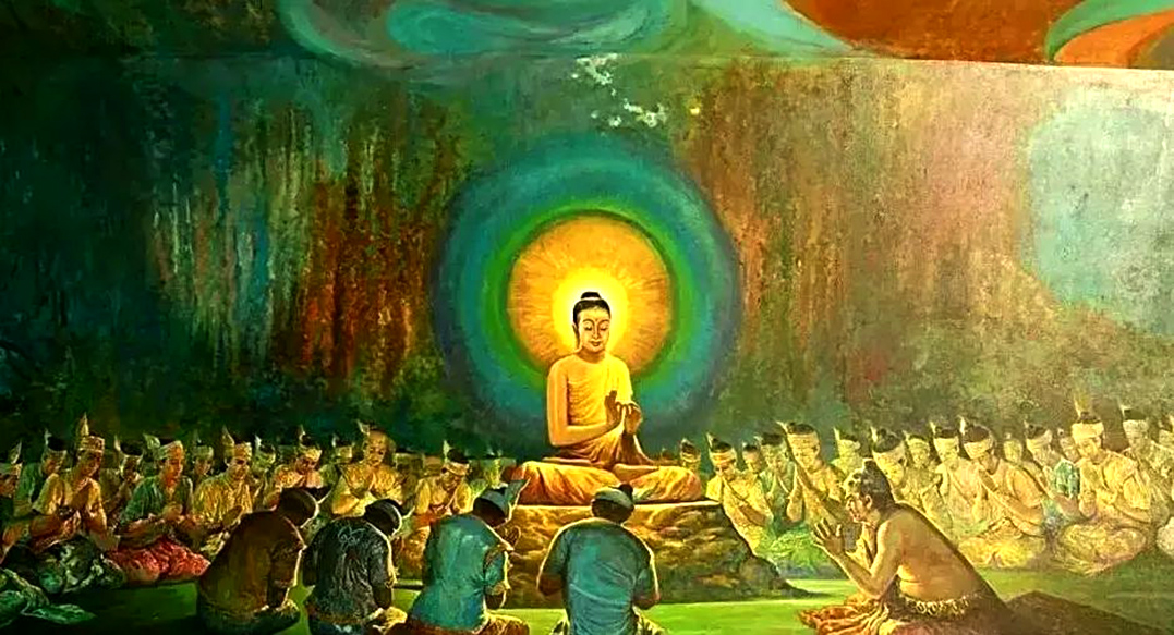 佛陀含笑说道:“比库们,他不是叫你们等一下,他这句话是对天人说的,六欲天的天人争着要塔蜜卡往生他们的天国,塔蜜卡要听诵经,不想被打扰,所以对天人说:‘等一下’。”