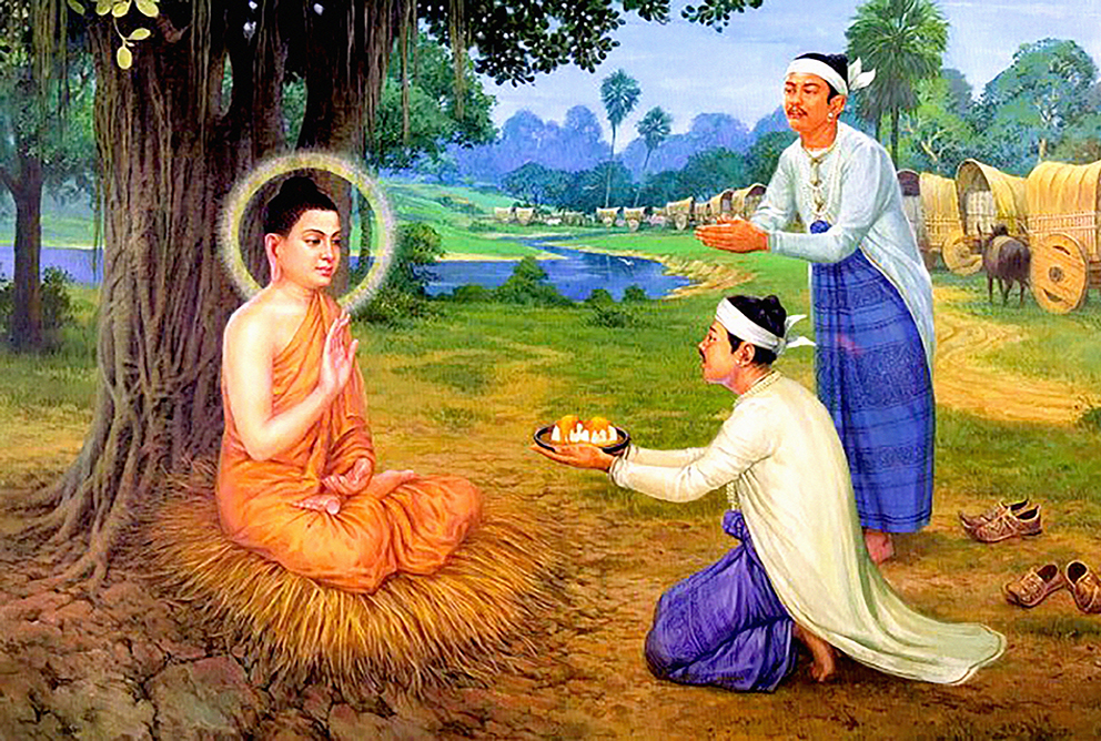 (我们恭敬地想起,在古代,婆罗门是依靠供养生存的。现今,我们也可以观想佛陀及舍利弗尊者、目犍连尊者、大迦叶尊者、阿难尊者等大弟子出外托钵,依靠施者的供养而活的情形。)