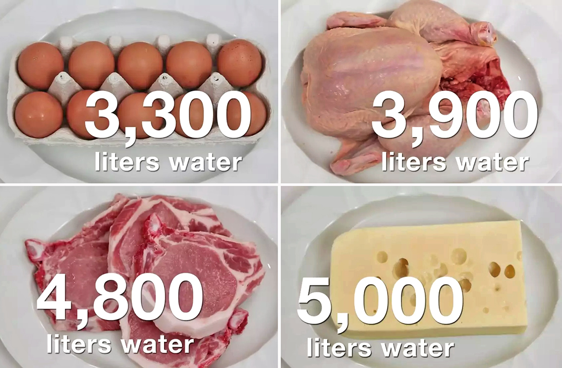 我们需要用大量饮用水来生产动物产品,每生产一公斤鸡蛋需要3,300升水;