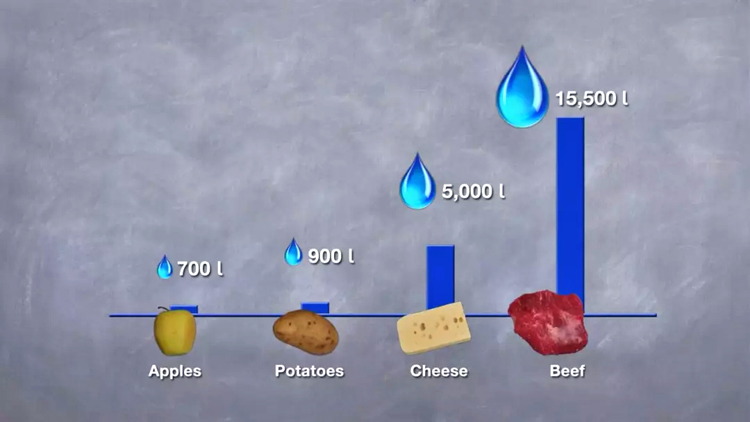 最令人惊讶的是每生产1公斤牛肉则需要15,500升水。