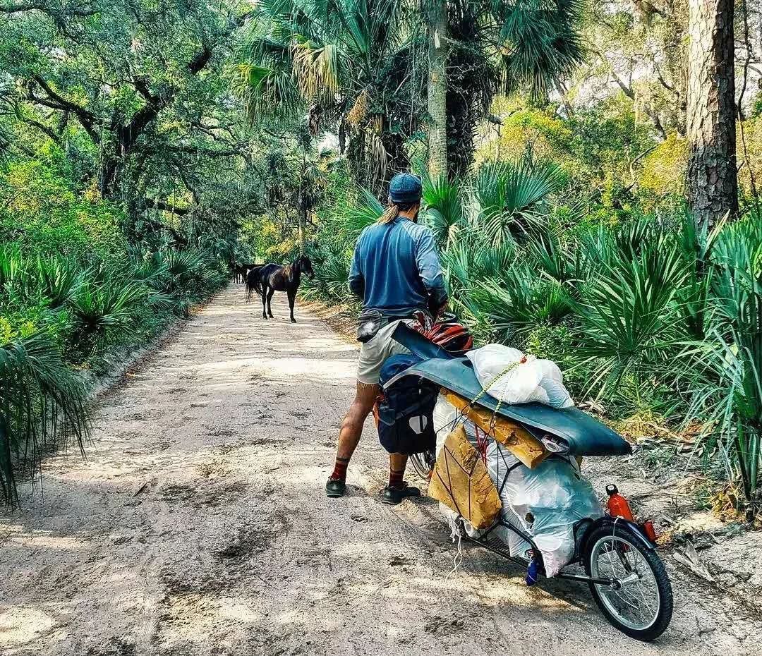第三年,他们骑行横跨整个美国本土地区,收拾出了将近1000kg的垃圾。