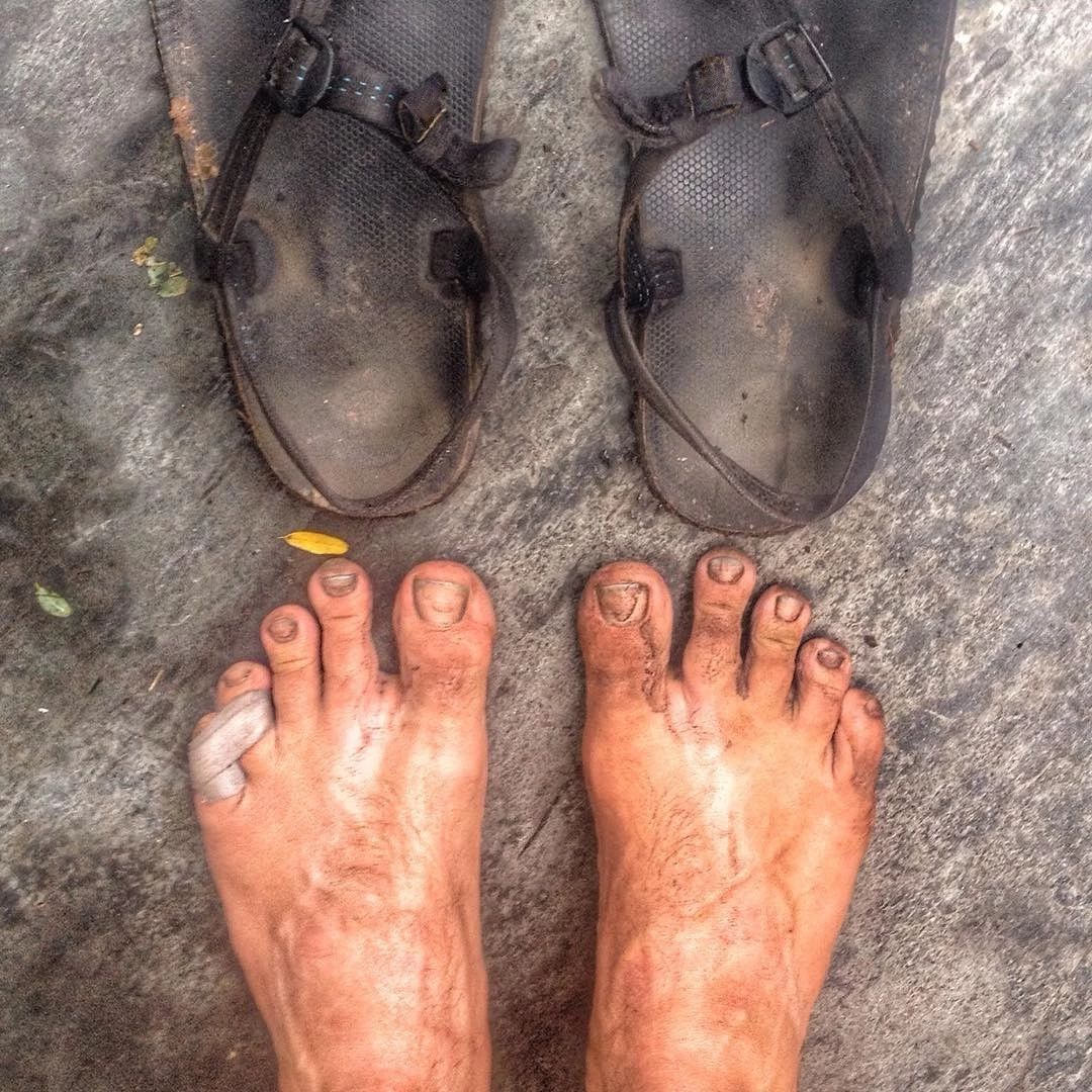 怎么可能不累。脚走伤了只能绑上胶布继续前进,一天背着重物走下来,腿已经不是自己的了,只能休息的时候拉拉筋放松一下。