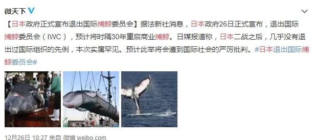 1986年国际捕鲸委员会通过《全球禁止捕鲸公约》后,世界各国先后宣布放弃商业捕鲸,日本也签署了这项公约。