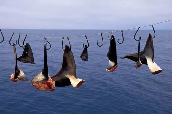 捕鲸人将鱼翅剪下晾晒