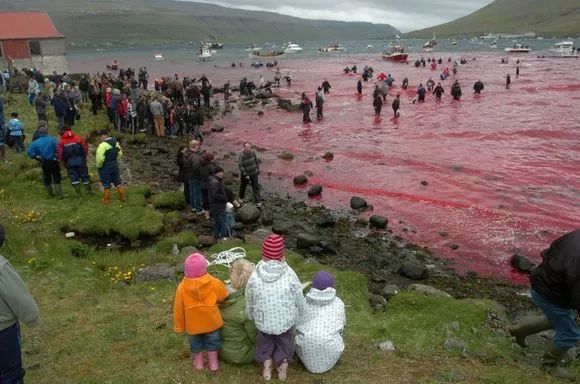 整个海岸都被鲸的鲜血染红