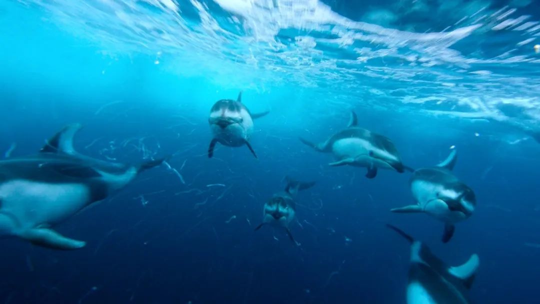 也正是这团团绿光,点亮了蒙特雷湾流动的盛宴——荨麻水母先来品尝开胃菜藻华,上百万的凤尾鱼呼哧一顿浮游生物,稍后座头鲸只需张大嘴巴就能享用凤尾鱼大餐,尾随而来的海狮和海豚还有凤尾鱼甜品吃到饱。