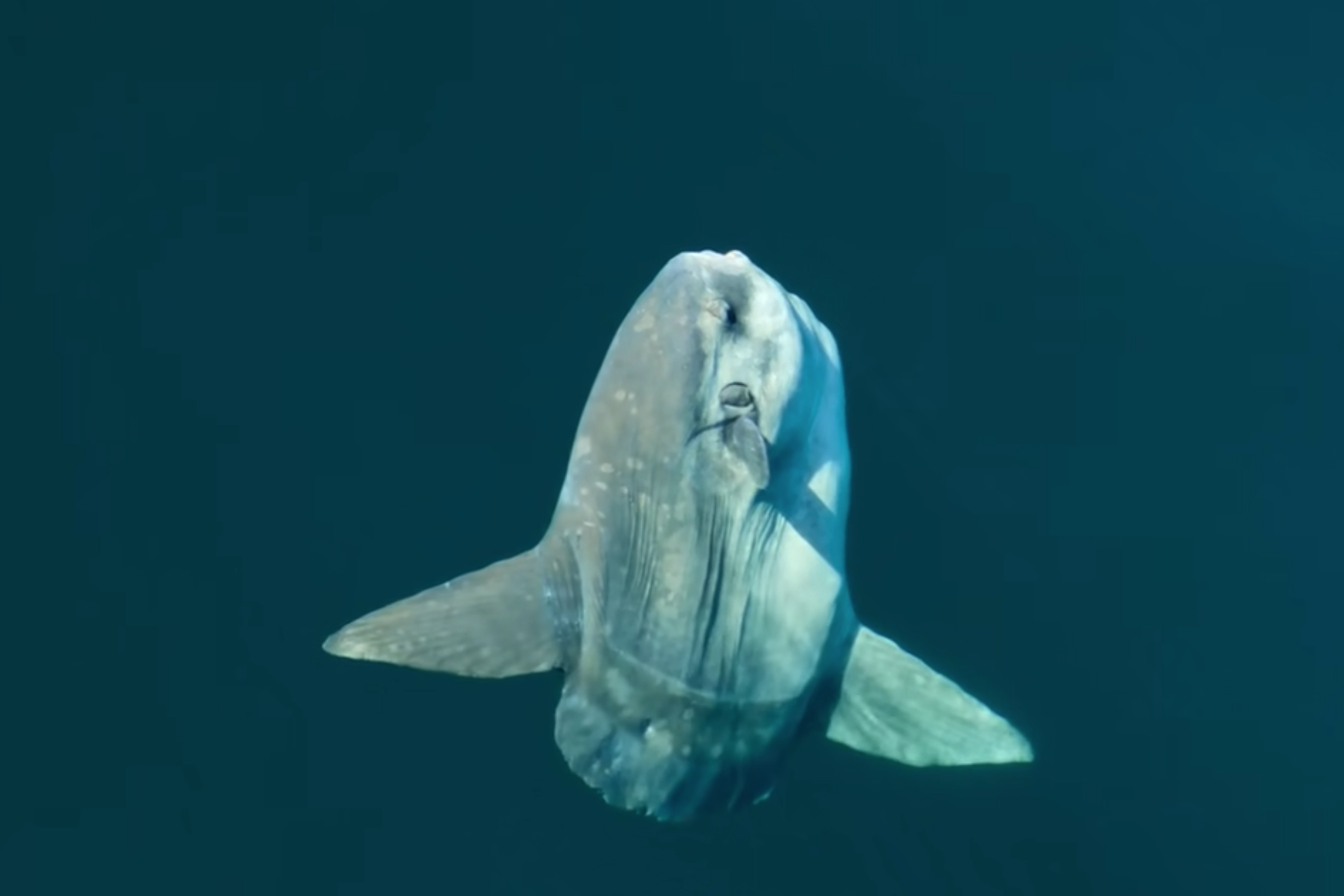 ● 夏季,身宽三米的翻车鱼在海面晒日光浴